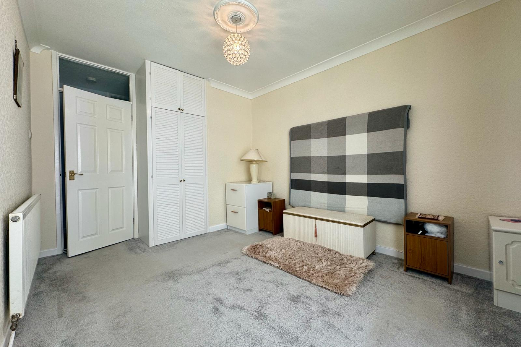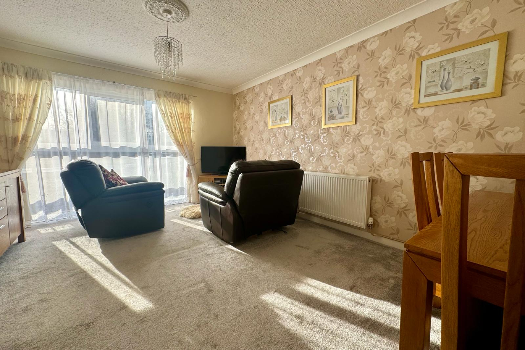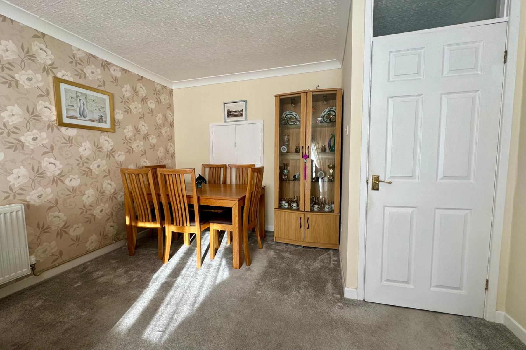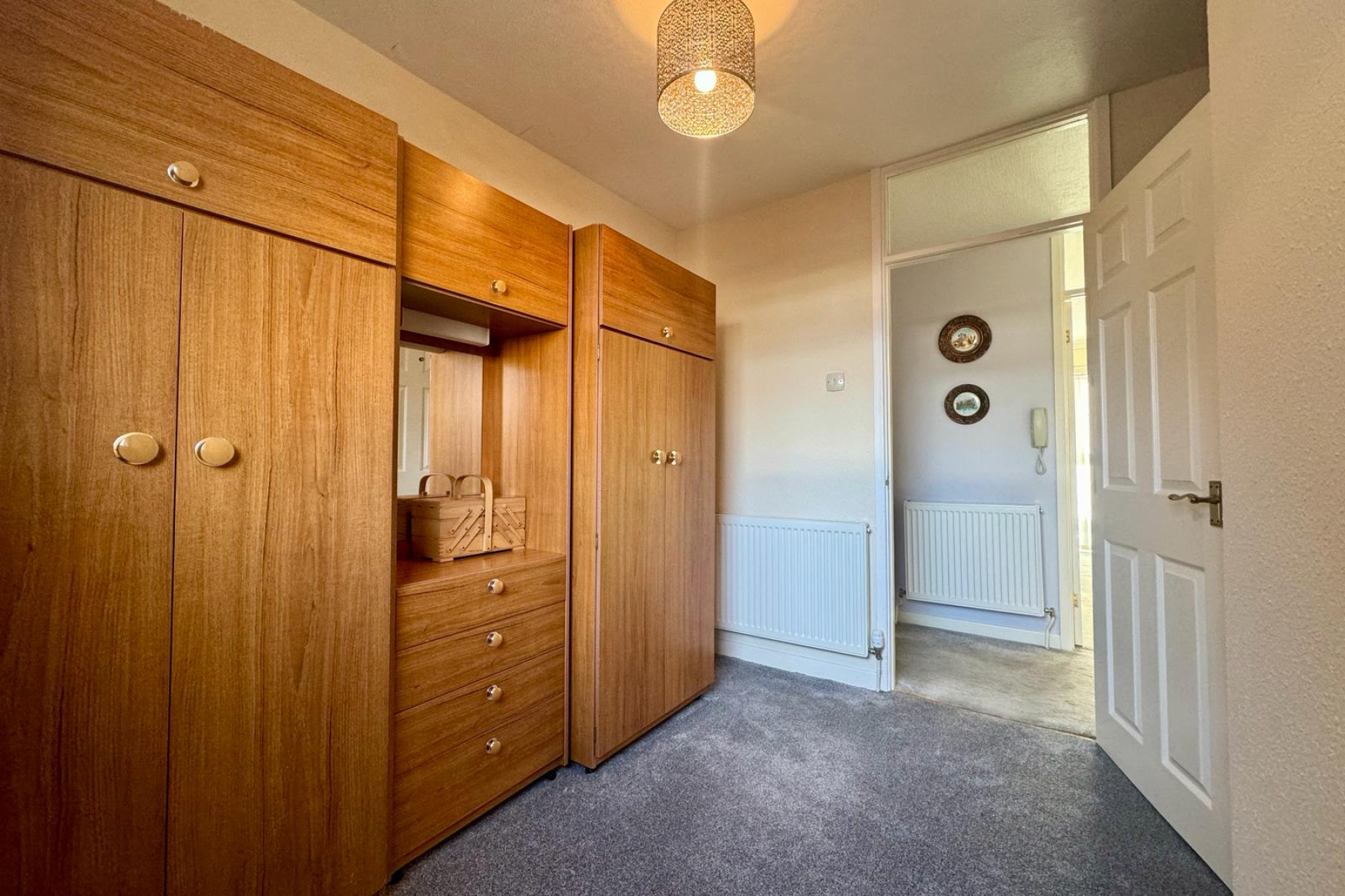 Located at the front of the property, this room has UPVC double glazed window overlooking views across the green space and established shrubbery. There is carpet and a radiator.