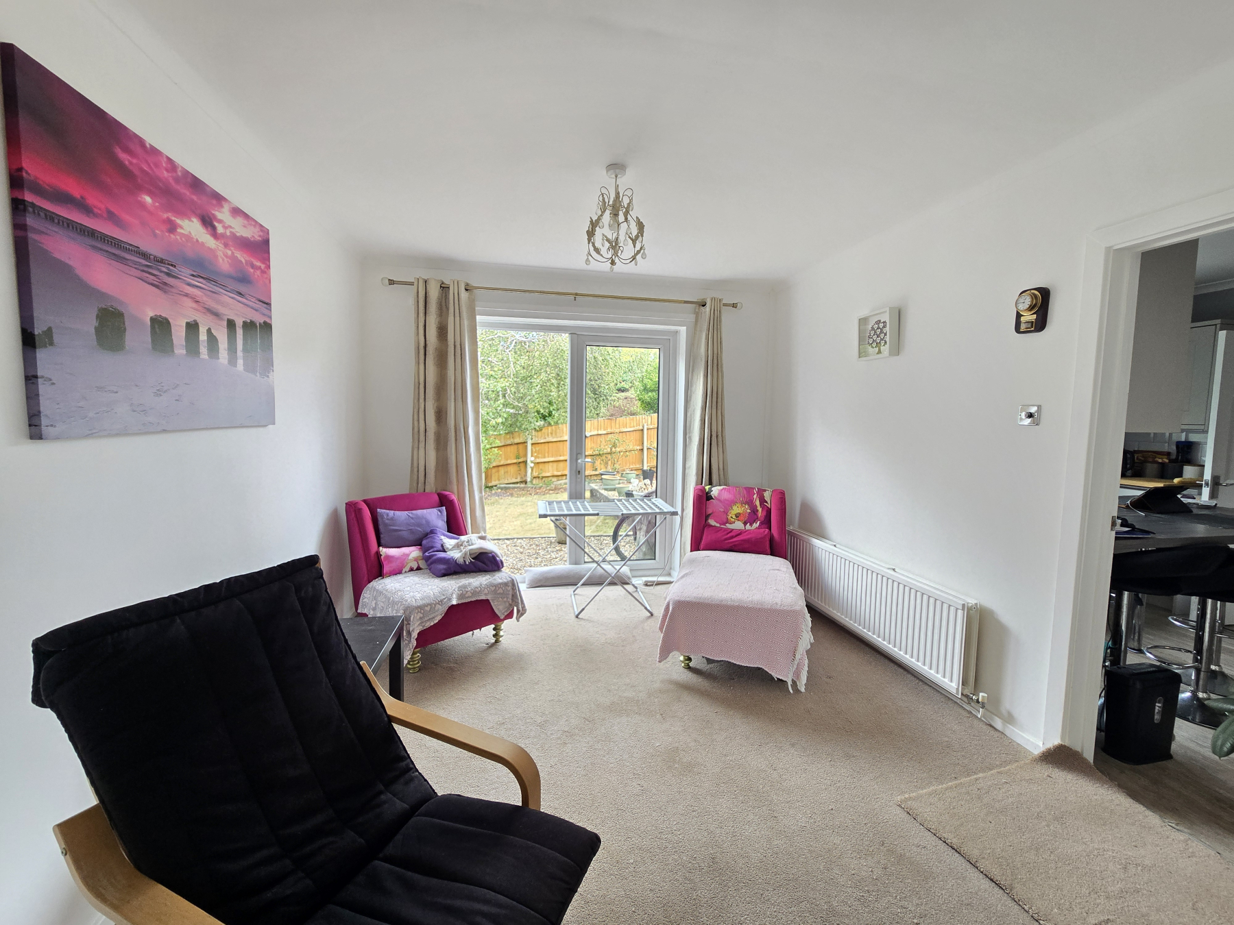 A versatile space with French doors leading directly to the rear garden, radiator, and door to the kitchen.