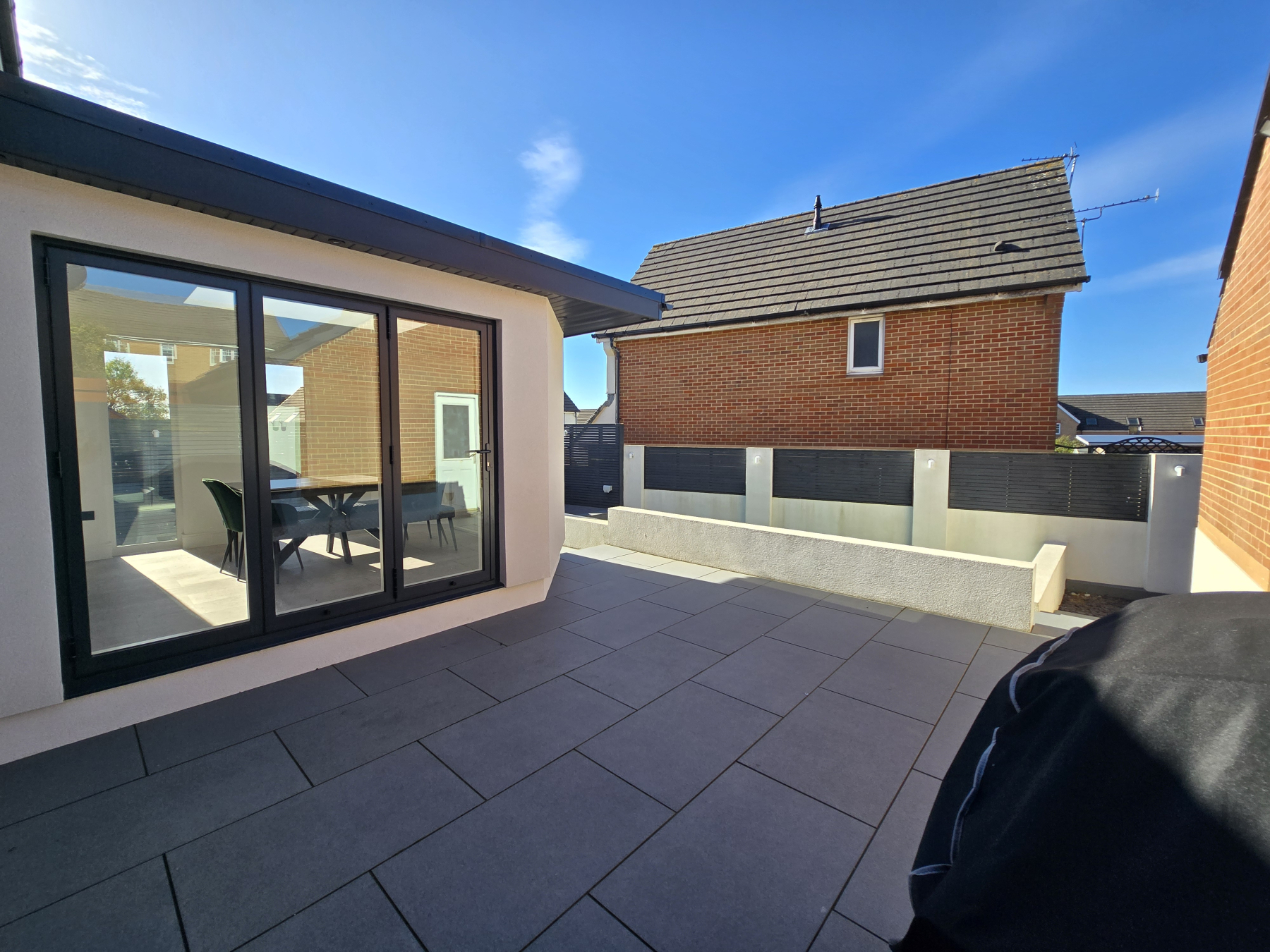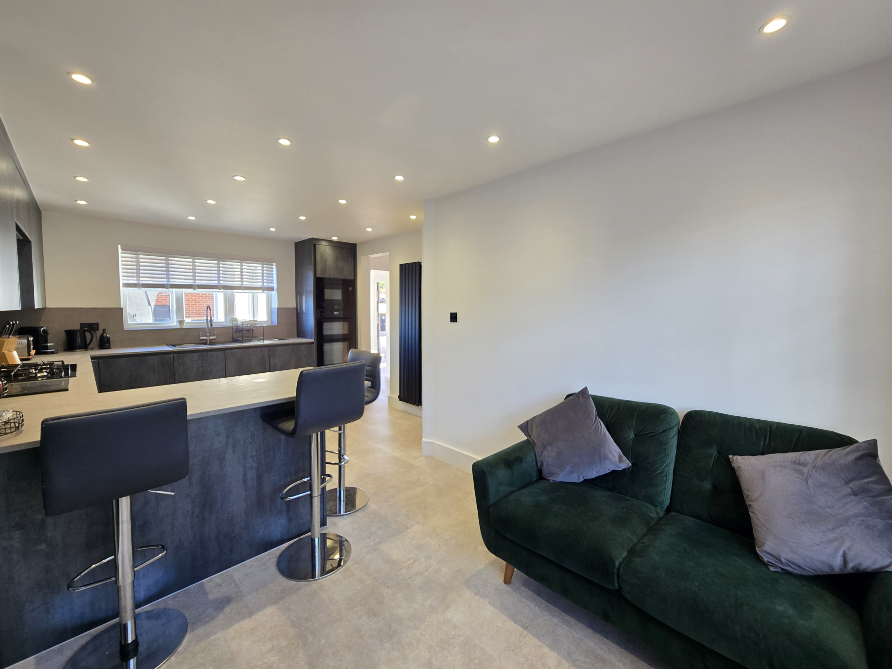 A stunning, light-filled extension ideal for entertaining or relaxing. Bi-fold doors open directly onto the rear garden, creating a perfect indoor/outdoor living experience. Features include two side aspect windows, a contemporary black column radiator, USB charging sockets, and recessed ceiling lights.