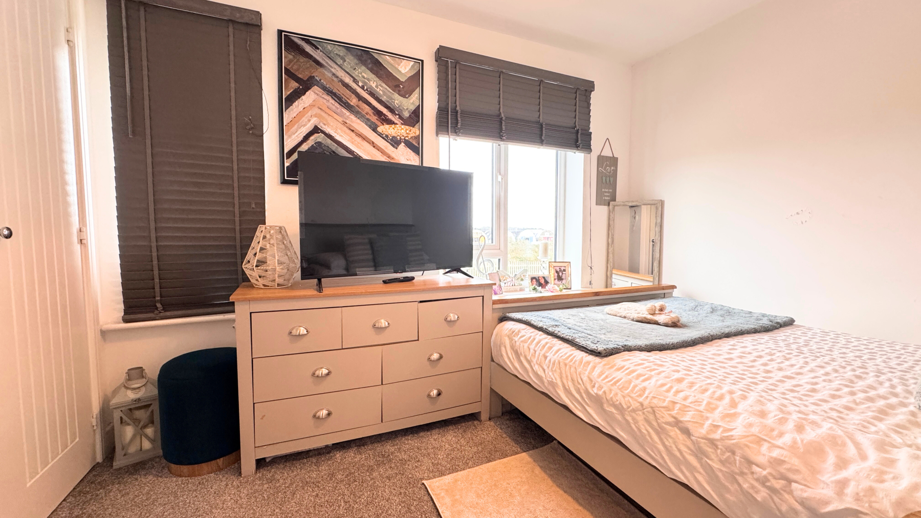 Light and airy double bedroom with UPVC window to the rear elevation with partial views over the Harbour. Wall mounted radiator underneath. Smoothly plastered walls and carpeted floor. Light fitting to centre of ceiling. Hanging space.